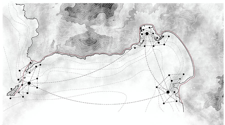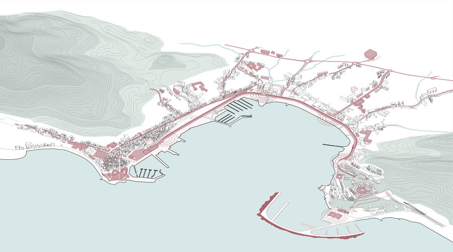 Our project is based on the desire to understand how the city of Ajaccio is currently articulated and what influence the impact of the port of the bay of Ajaccio on the city itself has. We are in an area characterized by an urban plot that, based on the historical fabric located in Ciutadella, stretches along the coastal route. However, there is a great disconnection between the city and its [natural surroundings]. This disconnection is mainly due to the presence of the train track, which interrupts the passage from the mountain to the sea and vice versa. There are currently small passages on the margins of the cities allowing the passage to these natural environments, although their current maintenance conditions are quite precarious.