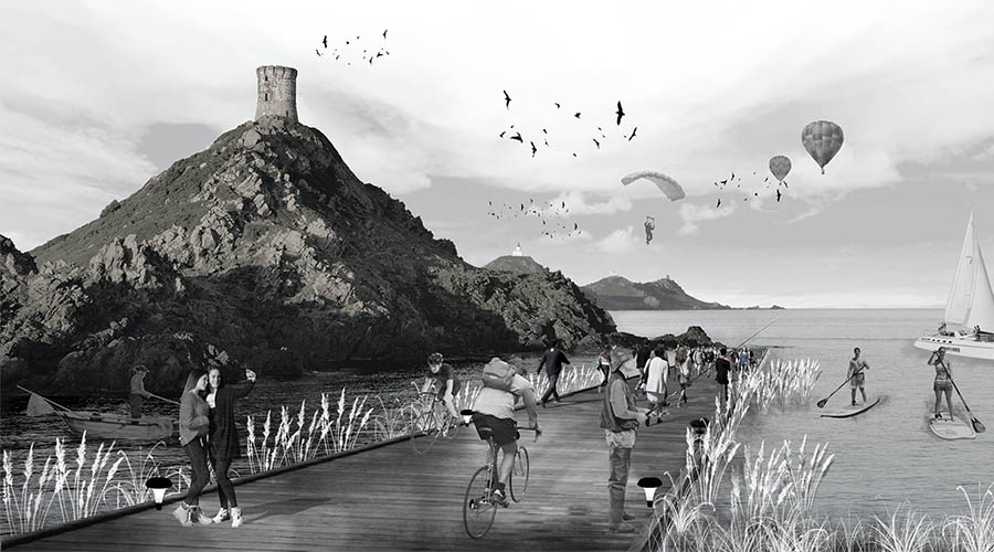 Thanks to the work carried out by colleagues of the previous year on the Bay of Ajaccio we have been able to establish two basic concepts to be able to work on their transformation. On the one hand, it is necessary to focus on changing mobility, investing the power of fast mobility, by slow mobility. On the other hand, we detect the existence of a singular historical point (as is the case of the bunker and the trench) in the neighborhood of Aspretto and we provide it with an infrastructure both at connectivity level and the development of a building Be able to interrelate with other singular points nearby.