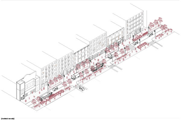 With these precepts in mind, we divide the transformation of Ajacció Bay into three zones that allow sewing the two natural environments that surround the city: the seafront and the mountain. It should be noted that these three zones will be connected to each other through a civic axis that contains pedestrian area and a tram mobility system that will replace the current train track. At the longitudinal level we connect from the port of Aspretto to the Ciutadella going through the neighborhood of Cannes and Les Salines. At the transversal level, the barrier disappears to make a border and that the appearance of these intermediate spaces to which we will call ecotons are those that solve both mobility and landscape architecture.